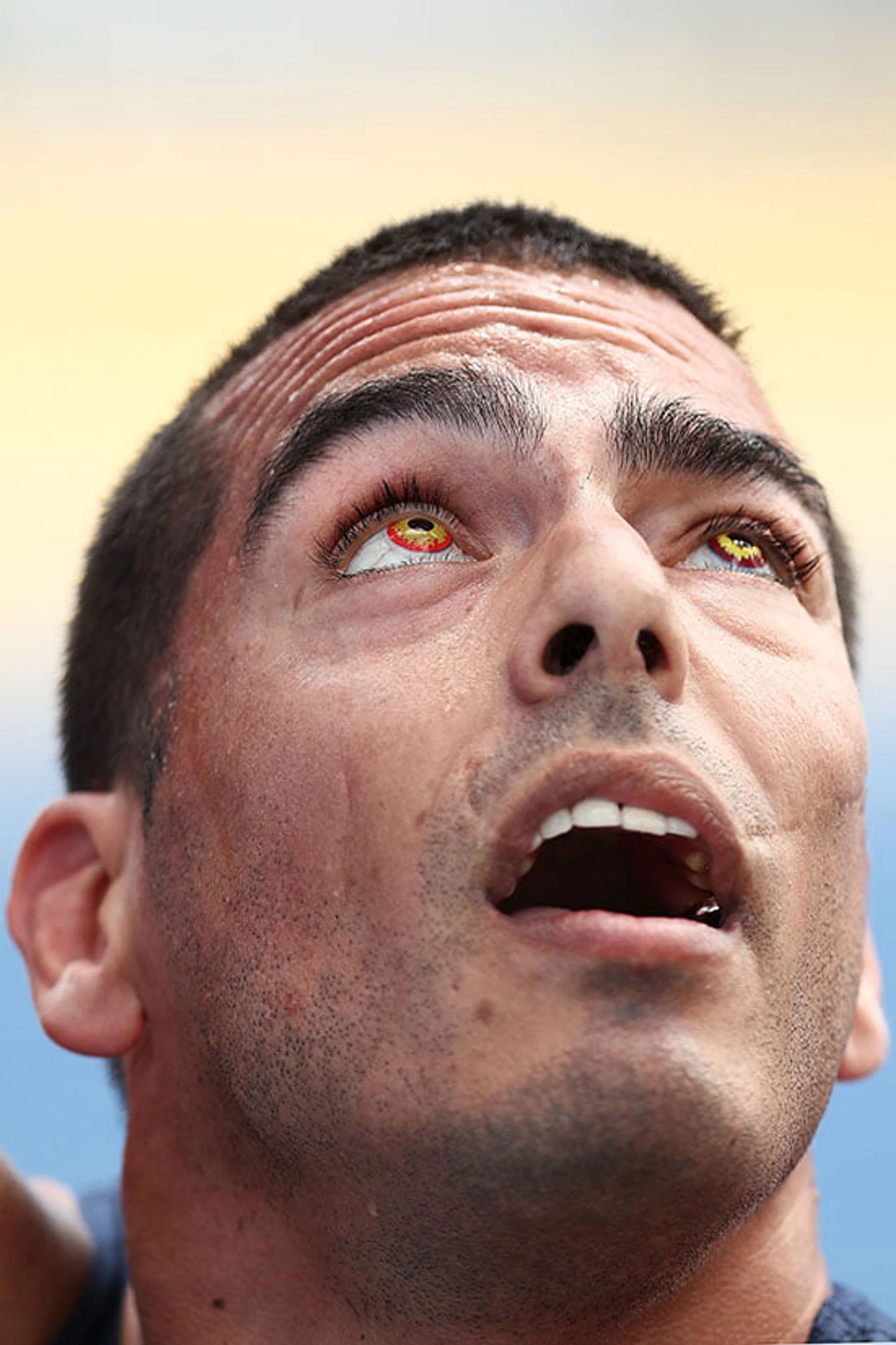 Кэйсер выбирает линзы в зависимости от настроения и вида спорта – к примеру, для толкания ядра подошли линзы с кошачьим глазом. Вот он позирует в таком в виде с принцем Гарри на Invictus Games-2018 в Австралии: