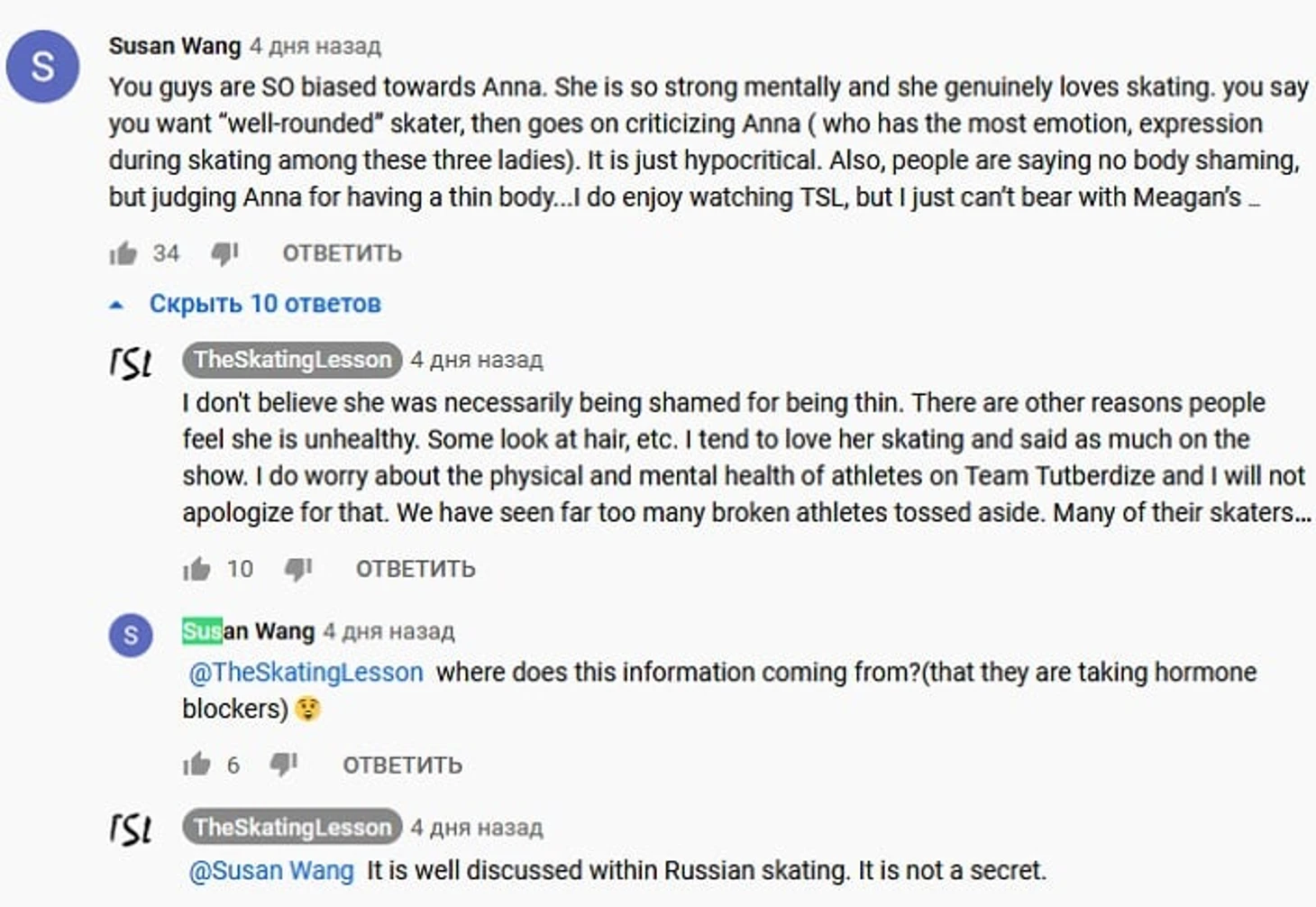 В комментариях с мнением Дюамель и Лиза были согласны не все. Пользователь Сьюзан Ванг спросила Лиза, почему он настолько предвзят к Щербаковой. Журналист ответил неожиданными подробностями: