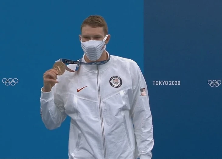 При этом американским пловцам не запрещают их оригинальные маски в стиле суперзлодея из вселенной «Бэтмена» – вот Райан Мерфи, который взял бронзу в том же заплыве, красуется в ней на подиуме: