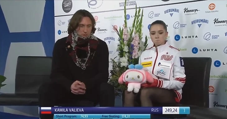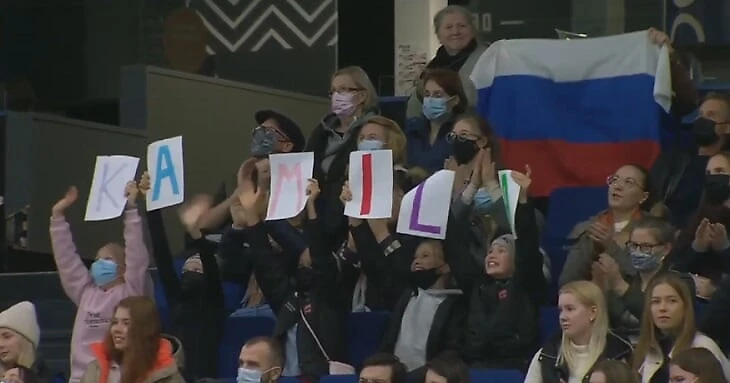 Интересно, что в КиКе с Камилой не было тренеров (Даниил Глейхенгауз выводил на лед Алену Косторную), вместо них спортсменку поддерживал врач сборной России Филипп Шветский. Забавна реакция Камилы на рекордные оценки – она сжала губы и покачала головой: мда, неплохо вышло.