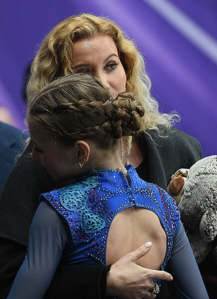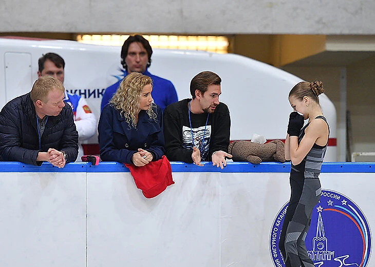 У Трусовой каждый сезон новый тренер: с Тутберидзе – объятия и истерика, с Плющенко – палец вниз, с Соколовской прижались головами
