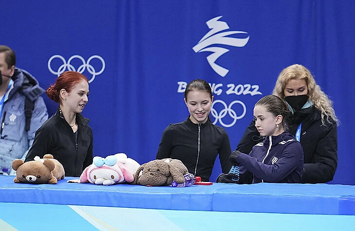 Соколовская подбадривала Трусову за бортиком – встретила с улыбкой и прижалась голова к голове.