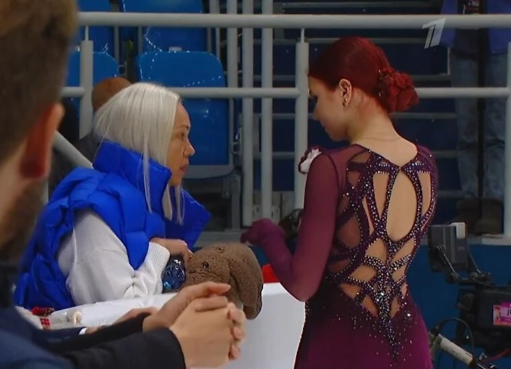 Тутберидзе пыталась успокоить и обнять Сашу, но досталось и ей: «Не надо, не надо, пожалуйста! Вы все знали, все знали!»