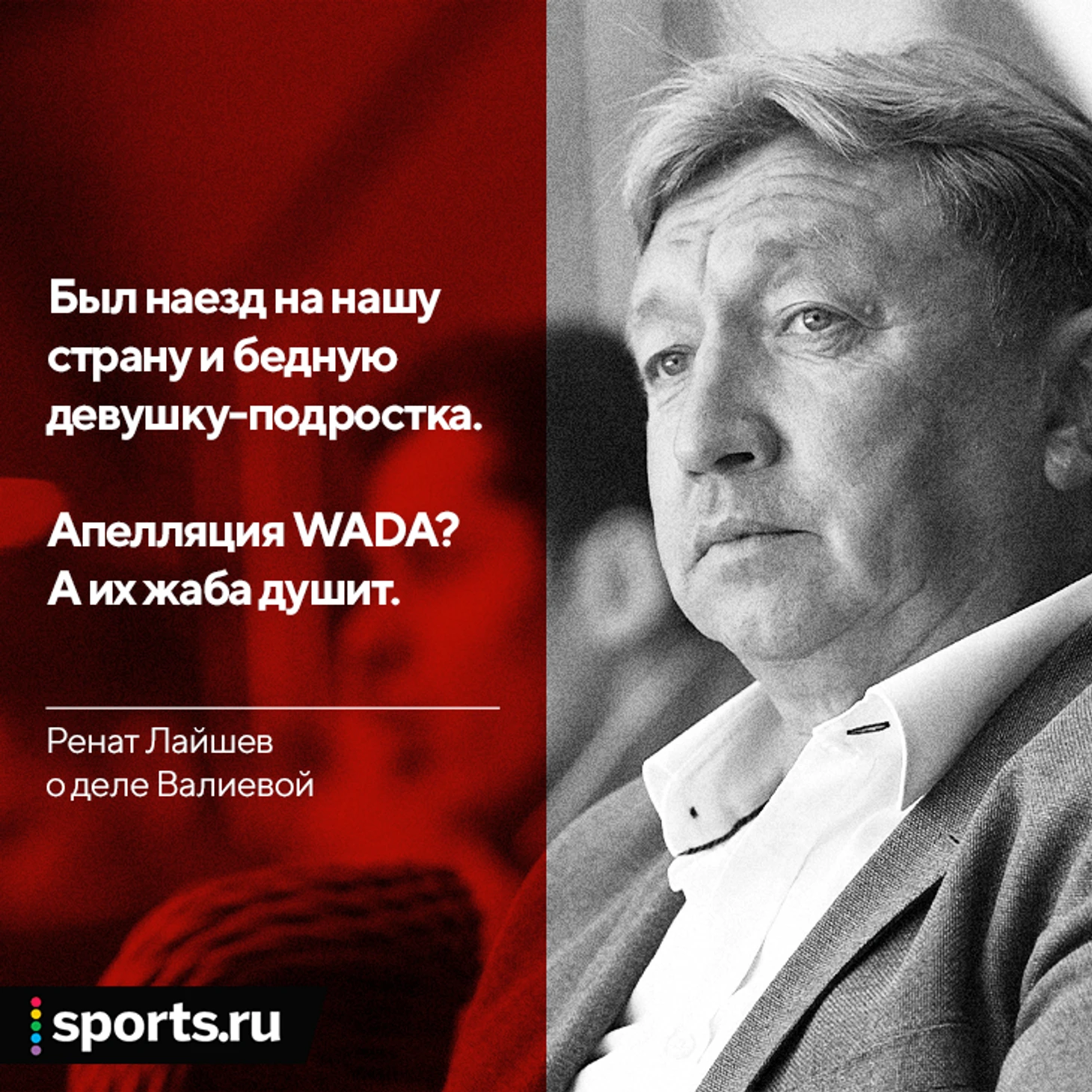 Был явный наезд на нашу страну и бедную девушку-подростка. И говорили: «Не стыдно обманывать ребенка?» Это они ее терроризировали своей клеветой. И не случайно Камила стала лучшей спортсменкой года. Она пример всей нашей спортивной молодежи. Валиева бьется, как наши ребята на передовой, за нашу страну!