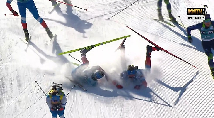 Бажин, хоть и не сошел с масс-старта, все равно пострадал от падения: промазал 9 раз и занял 26-е место. После гонки Кирилл вместе с Дмитрием Губерниевым покадрово разбирали повтор падения.
