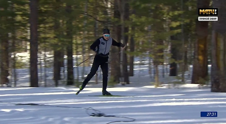 И тут же в прямой эфир попали его эмоциональные слова: «Бажин ####### (долбоящер), начал резать мне угол со спуска, на лыжу мне наехал и я упал».