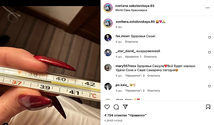 Соколовская постила фото градусника (видимо, Трусовой) в соцсетях: