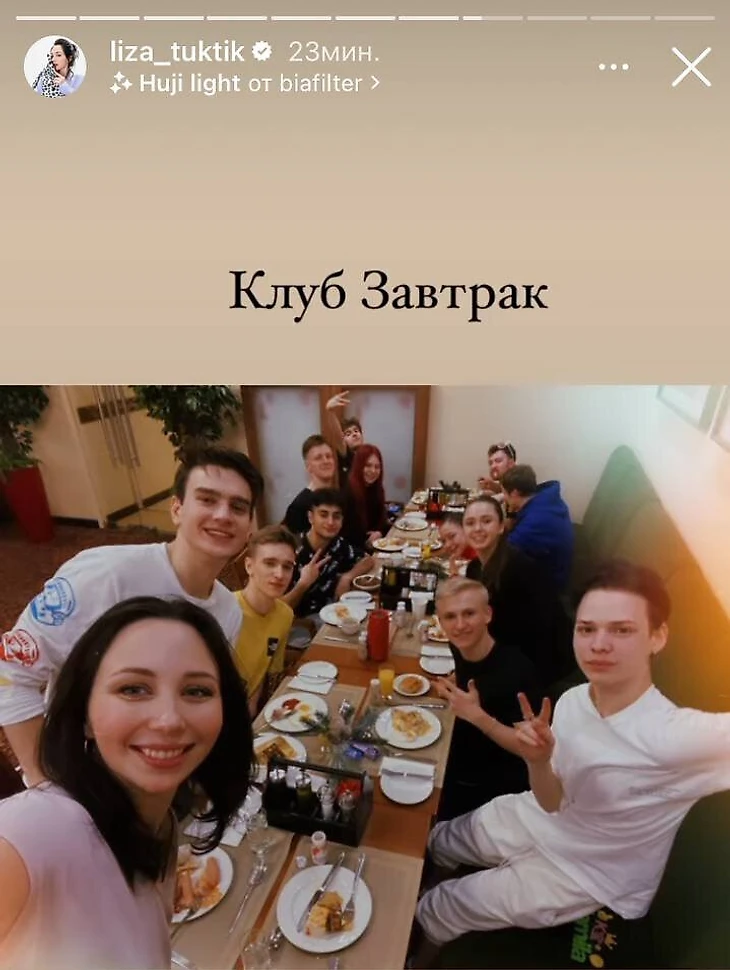 Но уже 25-го Саша засветилась на фото с завтрака на ЧР: