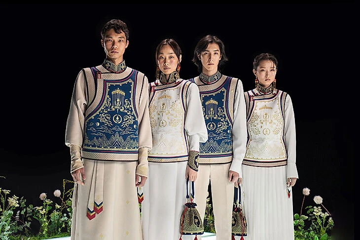 «Нас вдохновляет монгольский фестиваль Наадам, он для нас как Олимпийские игры. Это большой фестиваль, который проходит в Монголии в июле, люди наряжаются для церемонии открытия. Подобный дизайн можно увидеть повсюду в Монголии. Он очень красочный, а тот, что мы сделали для Олимпиады, имеет даже более приглушенные цвета. С вышивкой немного интереснее. Но это традиционная одежда.
