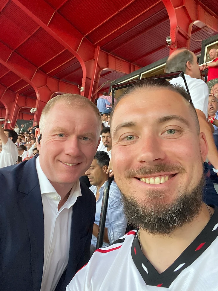 Когда он проходит мимо, я инстинктивно дотрагиваюсь до плеча и прошу фото. Он улыбается, смотрит на мою футболку - единственную футболку Юнайтед в пучине севильской армады. Останавливается. Я делаю селфи(оно тоже есть в телеграмм), благодарю его за все, что он сделал для нас, а он похлопывает меня по плечу и направляется в ложу выше.