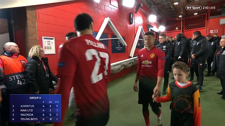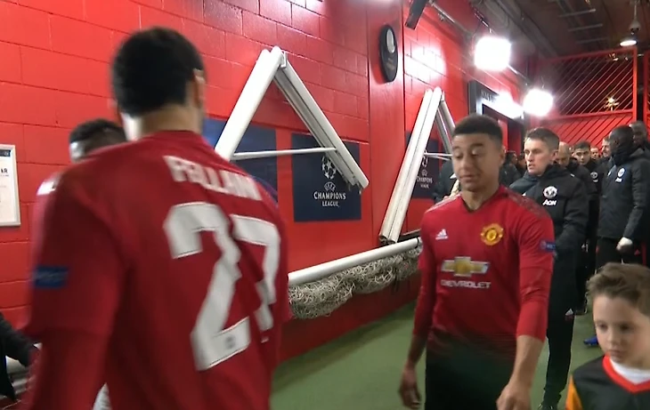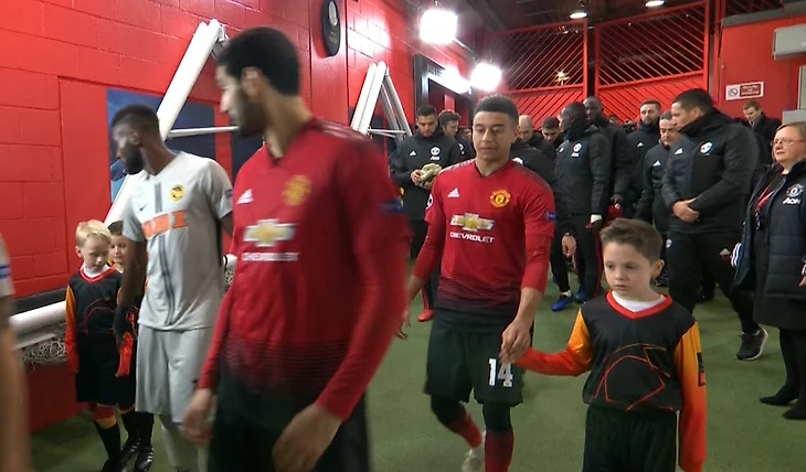 Судя по всему, Джесси Лингард передал своего сопровождающего ребенка Феллайни, так как на футбольный газон они вышли вместе.