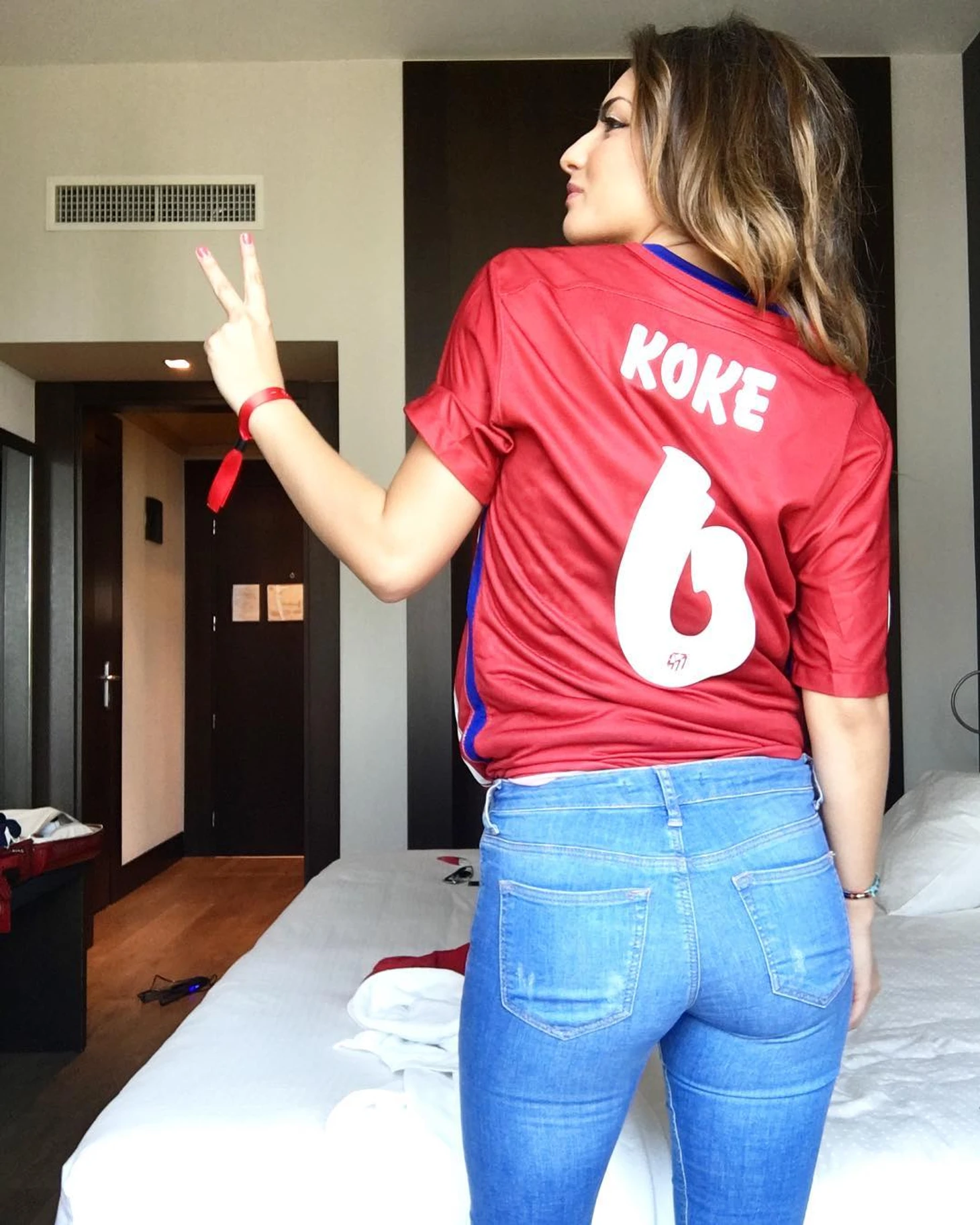 Девушка постоянно поддерживает своего мужа. Перед матчем за Суперкубок УЕФА (Реал—Атлетико 2:4), девушка записала видео в Instagram, со словами поддержки Коке.