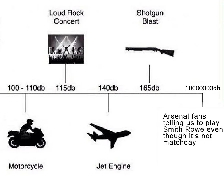 В итоге "Лейпциг" одержал уверенную победу 3-0, а английские фанаты атаковали официальную страничку немецкой команды в Twitter, с претензиями о том, почему не играл Смит-Роу. СММ-щики "РБ" не растерялись и выпустили ответный твит— диаграмму, в которой утверждается, что поклонники «Арсенала», с темой игры хавбека, создают больше шума, чем реактивный двигатель самолета, выстрел из дробовика, громкий рок концерт или спортивный мотоцикл. Сам пост вышел под заголовком "Уровень повседневных шумов".