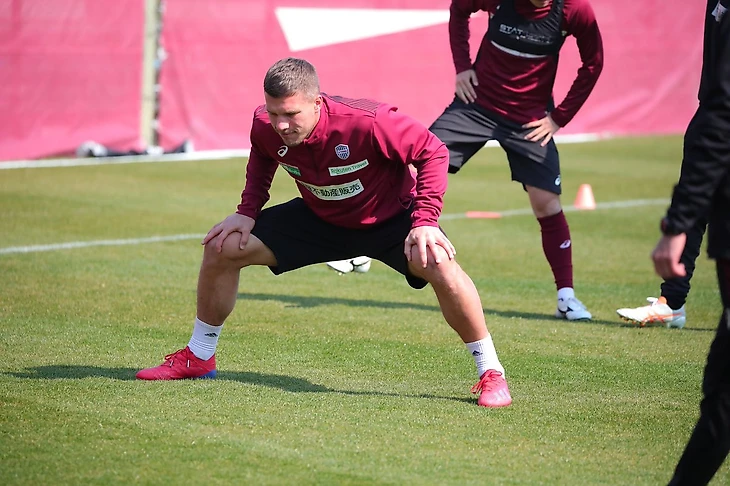 Бывший игрок "канониров" и сборной Германии, ныне выступающий в японской J-League за "Виссел Кобе", потихоньку осваивает местную культуру. Так, форвард был замечен на турнире сумоистов, где ему даже дали примерить маваси (пояс в сумо).