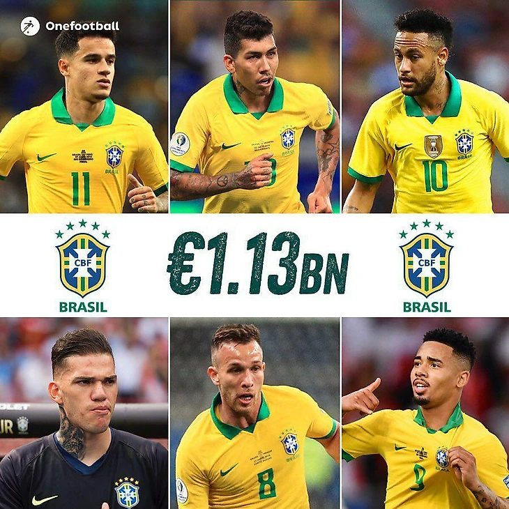 1. Сборная Бразилии— 1 млрд. 130 млн. евро