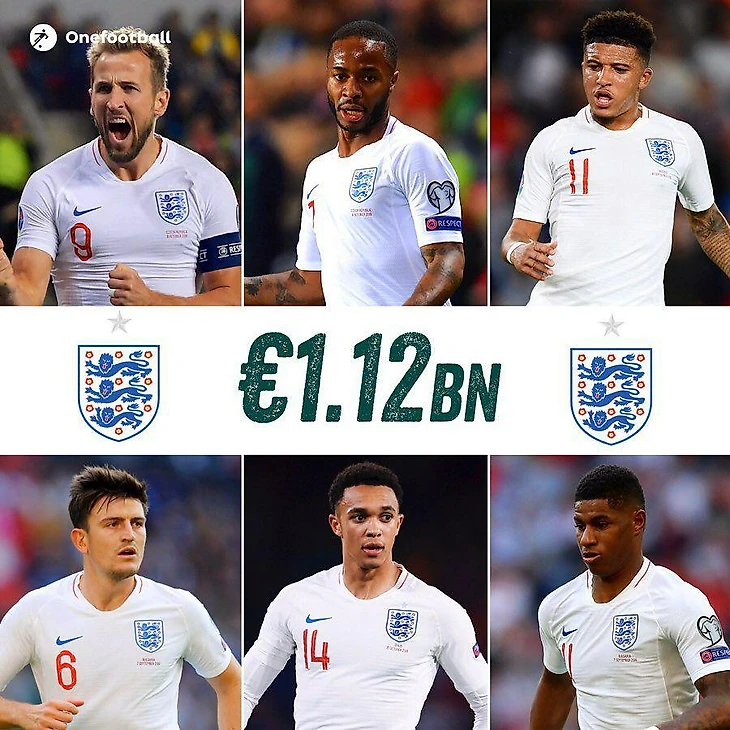 2. Сборная Англии— 1 млрд. 120 млн. евро