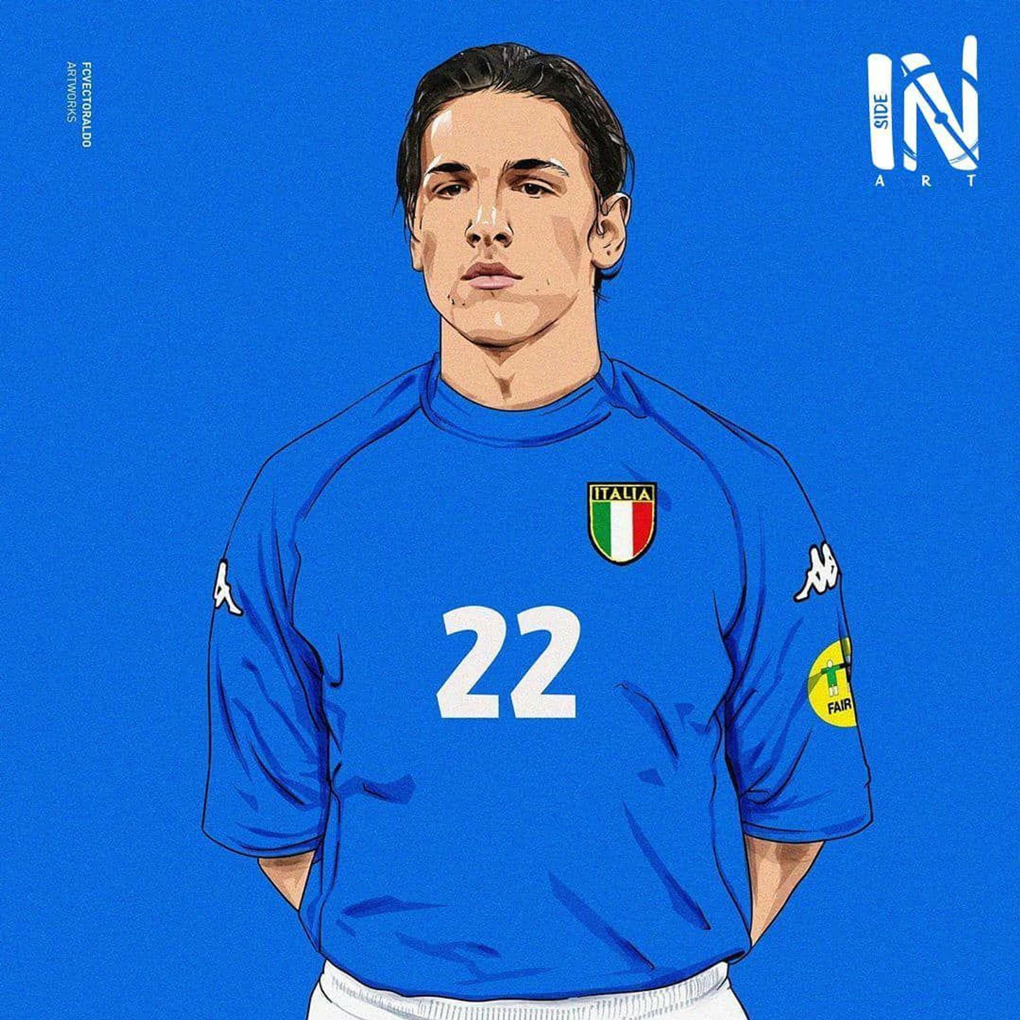 Николо Дзаньоло в футболке сборной Италии, в которой команда выступала на Евро 2000.
