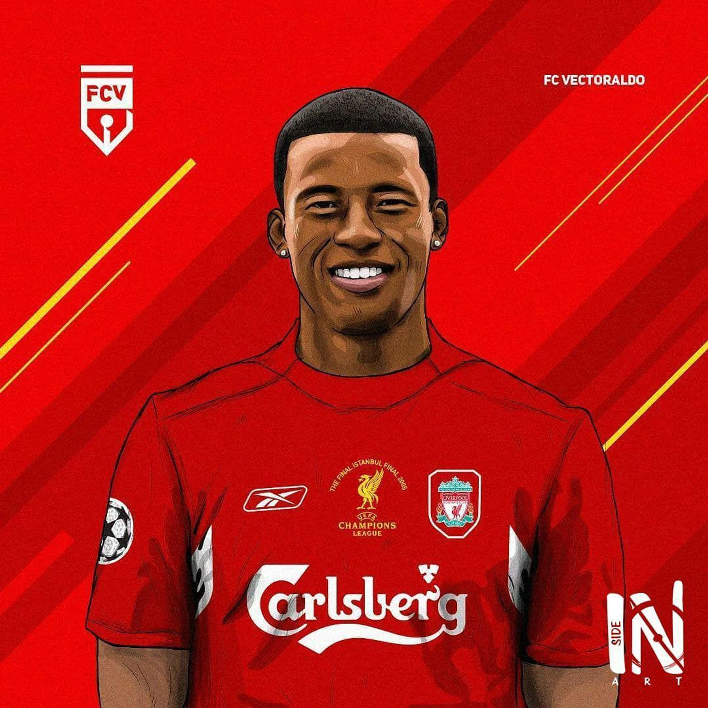 Джинни Вейналдум в домашней форме "Ливерпуля", в которой "красные" играли в финале Лиги чемпионов 2004/05.