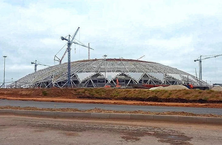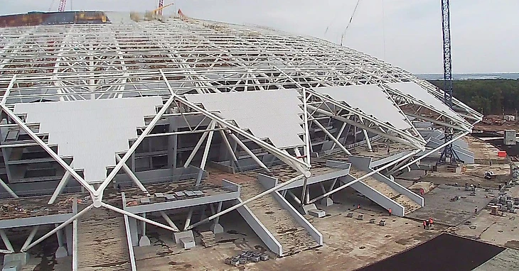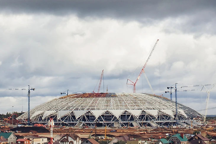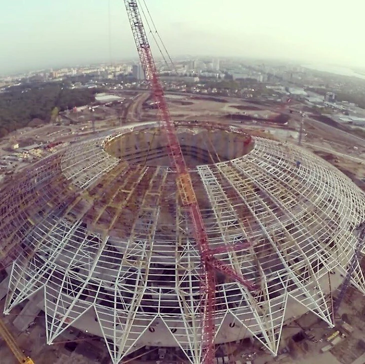 Последняя, как говорят, по порядку, но не по значению, статья цикла посвящена стадиону в Самаре. Примерно год назад меньше оптимизма внушала разве что арена в Калининграде. Монтаж потенциально красивого, но жутко громоздкого купола продвигался уж очень неспешно. Хотя с завершением сборки каркаса крыши свет в конце тоннеля всё же забрезжил, из числа отстающих этот стадион вычеркивать рано. Возможно, именно этим обусловлено очень малое количество фото и видео со стройки в публичном доступе. Собирал с миру по нитке и, в общем, вот что получилось.