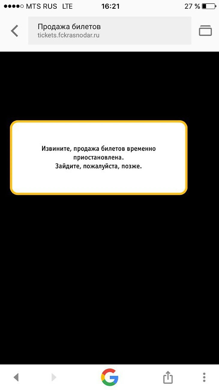 Всем привет, в прекрасный солнечный воскресный день я решил со своим семейством и друзьями сходить на футбол, а если быть точнее на супер - матч РФПЛ «Краснодар- Амкар» и соответственно начал заниматься билетами. Первое, что я сделал зашёл на официальный сайт клуба ФК «Краснодар», где хотел приобрести билеты онлайн, но наткнулся на вот какую ерунду :