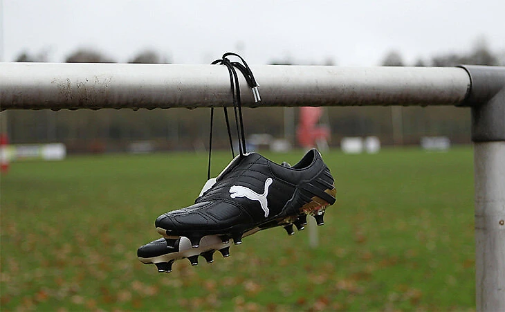 Фото: Thomas Krych/Keystone Press Agency, Fußballschuhe von Puma hängen an der Balustrade eines geschlossenen Sportplatzes. Symbolbild/Symbolfoto Amateurfußball i/Global Look Press; Gettyimages.ru/David Balogh; facebook.com/specialpatrols/posts; East News/Batard Patrick/ABACA