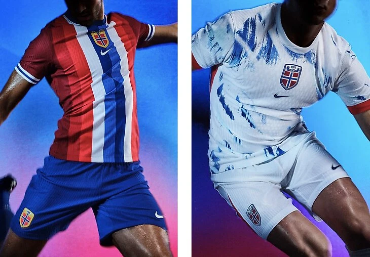 Nike очень постарался для Эрлинга Холанда. Домашняя форма выполнена в цветах флага Норвегии, а полоски нанесены необычно и вдохновлены формой меча. Внутри воротника надпись «Сильнее вместе».