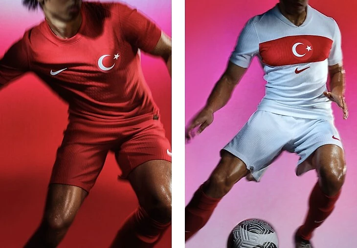 Домашняя футболка сборной белая с красной полосой, которая специально сделана со складками и напоминает обернутый вокруг футболиста флаг. Так Турция отмечает 100-летие нынешнего флага.