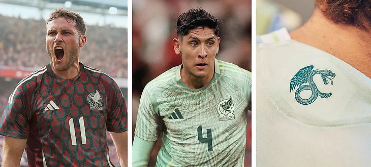 У мексиканцев обе футболки украшены узорами ацтеков и майя. Тоже не обошлось без птицы-символа – на домашней форме графика перьев отсылает к орлу. На выездной есть изображение змеи.