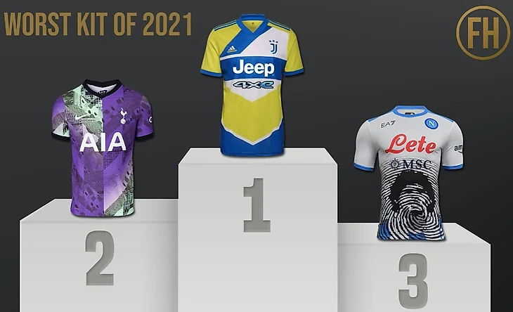 На первом месте в рейтинге худших форм оказался третий комплект «Ювентуса». Источником вдохновения формы стали девяностые и цвета Турина (отсылка к сине-желтому гербу города). Но читателям FH форма не зашла и набрала 28,6% в голосовании.