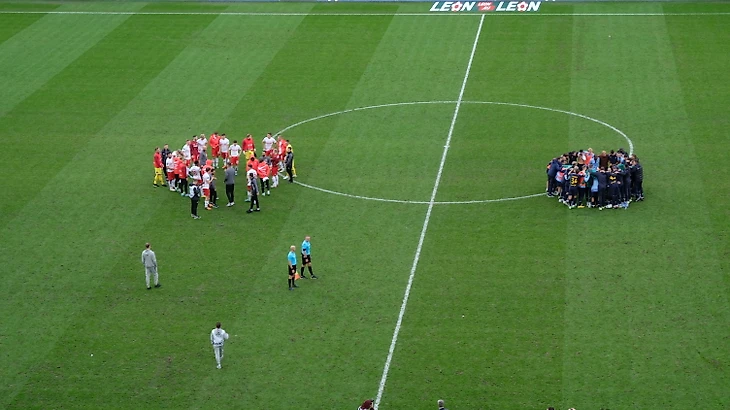 Послематчевое фото довольно ярко отражает отношение команд к ничейному результату.