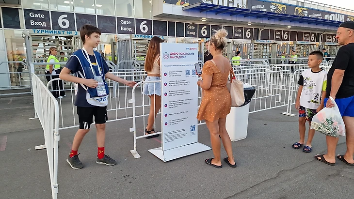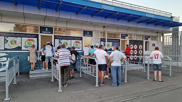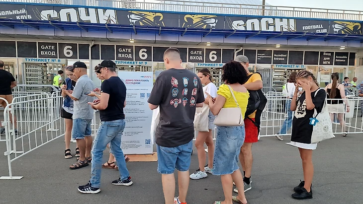 За час до матча воскресным вечером явного ажиотажа перед игрой не наблюдается. Но спустя год после введения обязательного паспорта болельщика для доступа на все матчи отечественной Премьер-Лиги, те, кто хотел попасть на игру, без проблем и, кажется, серьёзных накладок показывают волонтёрам свои QR-коды для доступа на стадион.