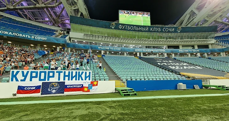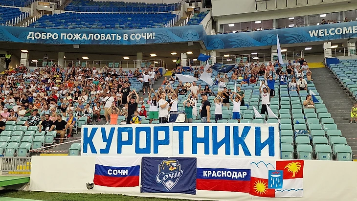 Правда, сектор сочинских ультрас рядом по-прежнему закрыт. С начала введения Fan ID на всех стадионах, принимающих матчи РПЛ, официальный фан-клуб ФК «Сочи» присоединился к массовому протесту фанатских объединений других клубов РПЛ против введения паспорта для болельщика для доступа на игру.