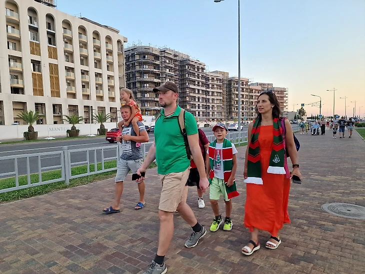 Дневная сочинская жара спала, и болельщики устремляются к стадиону.