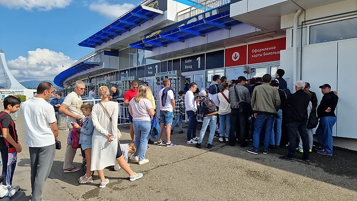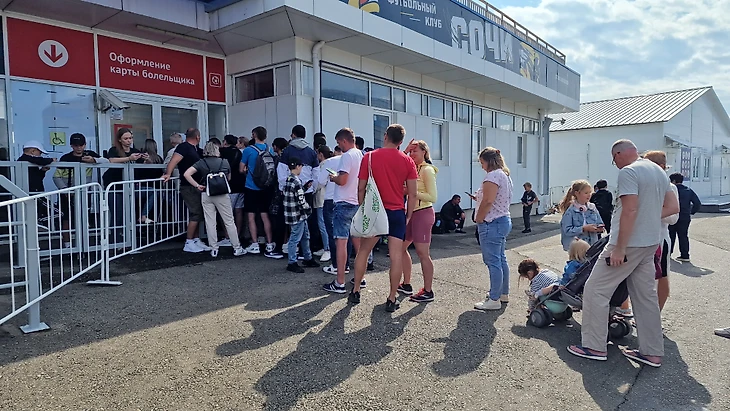 Первое, что бросилось в глаза при подходе к бывшему олимпийскому стадиону «Фишт» в субботний полдень 7 октября - очередь за паспортом болельщика почти на сотню человек. Страждущие попасть на матч «Сочи - Зенит» в рамках 11 тура Премьер-лиги стояли прямо под палящим октябрьским солнцем, ожидая своей очереди.