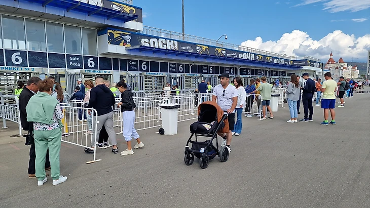 За час до игры перед кассами собирались небольшие очереди. В этом сезоне ценители футбола с сочинской пропиской могут приобрести билет на домашние игры ФК «Сочи» в кассе стадиона со скидкой 50%.