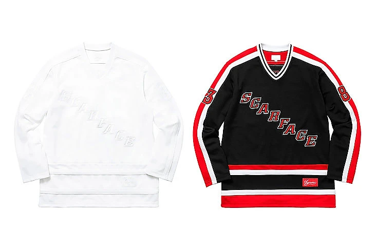 Раскрутить ее помог певец Фрэнк Оушен, который заявился в ней на SNL. С тех пор что-то хоккейное выпустили примерно все ключевые марки жанра. Тот же Supreme выкатил хоккейные джерси в 2013-м и 2014-м. В 2016-м у них вышла хоккейная майка в коллаборации с культовыми металлистами Black Sabbath. Самый свежий хоккейный релиз Supreme – прошлогодний, с надписью SCARFACE поперек груди.
