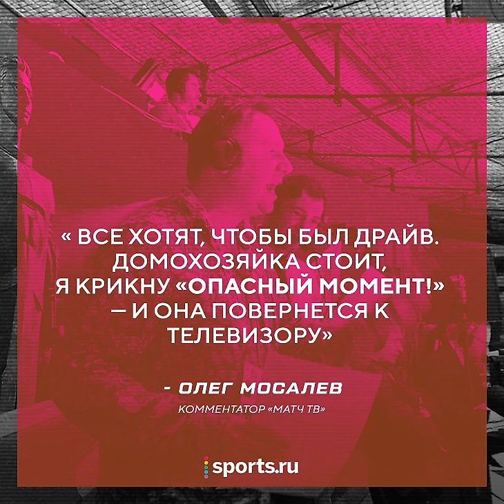 – Незадолго до смерти Сергея Наильевича мы с ним комментировали, он сказал: «Олег, ты очень эмоционально, здорово комментируешь, за этим будущее». Это для меня ценно, и я думаю так же. Все хотят, чтобы был драйв. Домохозяйка стоит, я крикну «Опасный момент!» – и она повернется к телевизору.