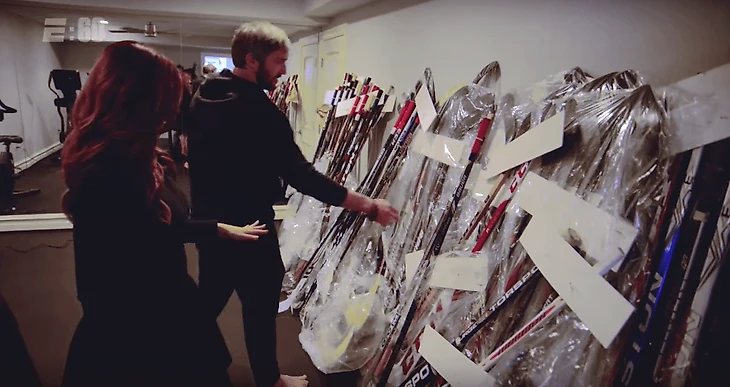Он проводил Рэйчел в тренажерный зал, чтобы показать самую первую клюшку в энхаэловской карьере – и там видно всю его коллекцию клюшек. Впечатляет.
