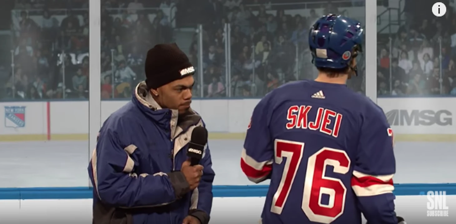 19 октября 2017 года культовое американское шоу Saturday Night Live вышло с хоккейным интервью. Спортивный корреспондент шоу Лазло Холмс, который обычно работал на матчах «Нью-Йорк Никс», впервые оказался на ледовой арене – и поговорил с игроком «Рейнджерс» Брэди Шеем, чья фамилия пишется как Skjei.