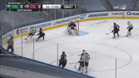 Вот два примера из второй игры с «Колорадо»: проход на одних руках против Сами Жирара и опасный бросок + победоносная война за воротами против Задорова и Нието.