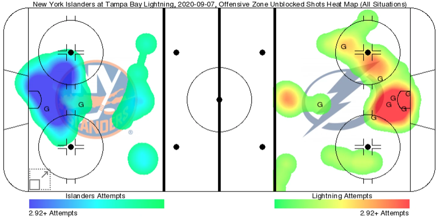 В итоге на фоне примерного равенства грязных бросковых показателей в створ «Тампа» бросила на 9 раз больше. Само по себе это не критично – в конце концов, уступив в бросках в створ, «Айлендерс» удержали равенство по xG, то есть создали не меньше угроз воротам соперника меньшим количеством бросков. Но в то же время эта разница в 9 бросков в створ все-таки подчеркивает преимущество в точности: «Тампа» меньше попадала в блок (12 раз – против 14 у «Айлендерс»), чаще попадала в створ и намного чаще попадала мимо вратаря.
