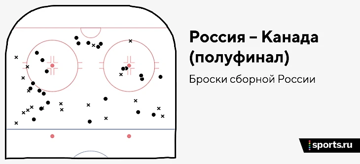 В целом, удивительную инертность нашей атаки отлично иллюстрирует карта бросков. Нападающие сборной России очень неровно провели весь турнир – и матч с Канадой, что очень грустно, стал самым дном, хотя мы рассчитывали, что двигаемся на вершину. Мы атаковали даже хуже, чем в самых плохих с точки зрения атаки матчах.