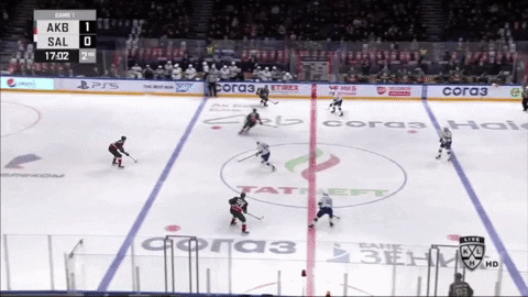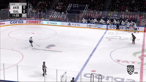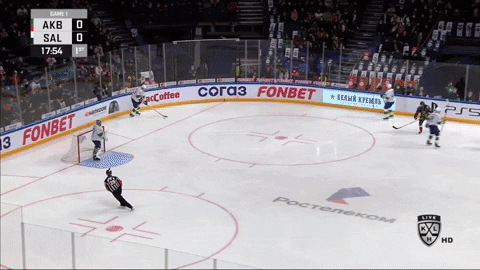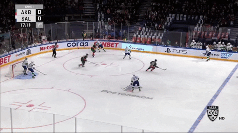 Тут тоже можно показать еще четыре гифки, но я обойдусь двумя, чтобы не перегружать пост. Комфорт для «Ак Барса» заключался еще и в том, что у его нападающих было время. И для того, чтобы зацепиться за защитников Уфы, которые суетливо бегали по своей лицевой, когда на них давили. И для того, чтобы поплотнее расположиться в средней зоне.