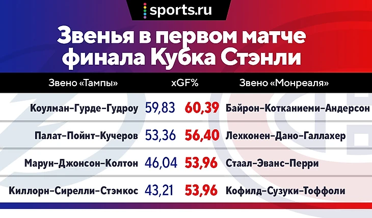 «Тампа» сразу нашла слабое место в защите «Монреаля». Первый матч финала получился слишком легким