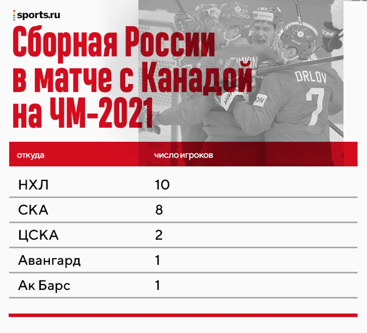 Подавляющее большинство игроков КХЛ представляют СКА и ЦСКА. Толчинский и Воронков – «Авангард» и «Ак Барс» соответственно.