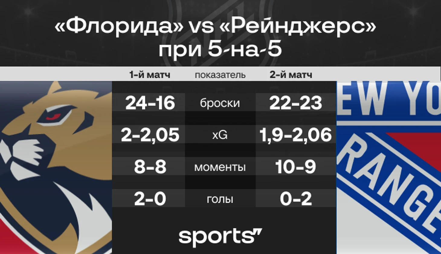 Во втором матче большинство «Рейнджерс» должно было стать фактором – в сумме за два матча команда сыграла с лишним хоккеистом больше 8 минут, и даже если взять ее обычную результативность по нижней границе, это должен быть гол.