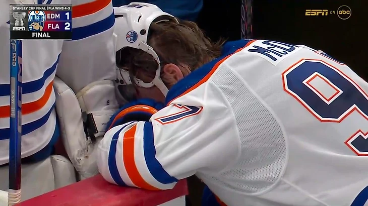 В хоккее самые яркие, здоровые и выносливые суперзвезды проводят на площадке максимум 40% игрового времени. В седьмой игре Макдэвид в какой-то момент перестал уходить с площадки – и в сумме набрал всего 24 игровых минуты. Возможно, не уместится в голове людей, которые не понимают хоккей, но при всем количестве упоминаний фамилии «Макдэвид» в заголовках он сам проводит на льду меньше половины матча.