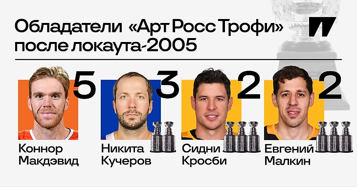 Причем больше всех – и сделал это в третий раз за карьеру. Чтобы вы понимали ценность достижения, уточню: Овечкин набирал больше всех очков в регулярке один раз за карьеру, в 2008-м. Кросби и Малкин – по два раза.