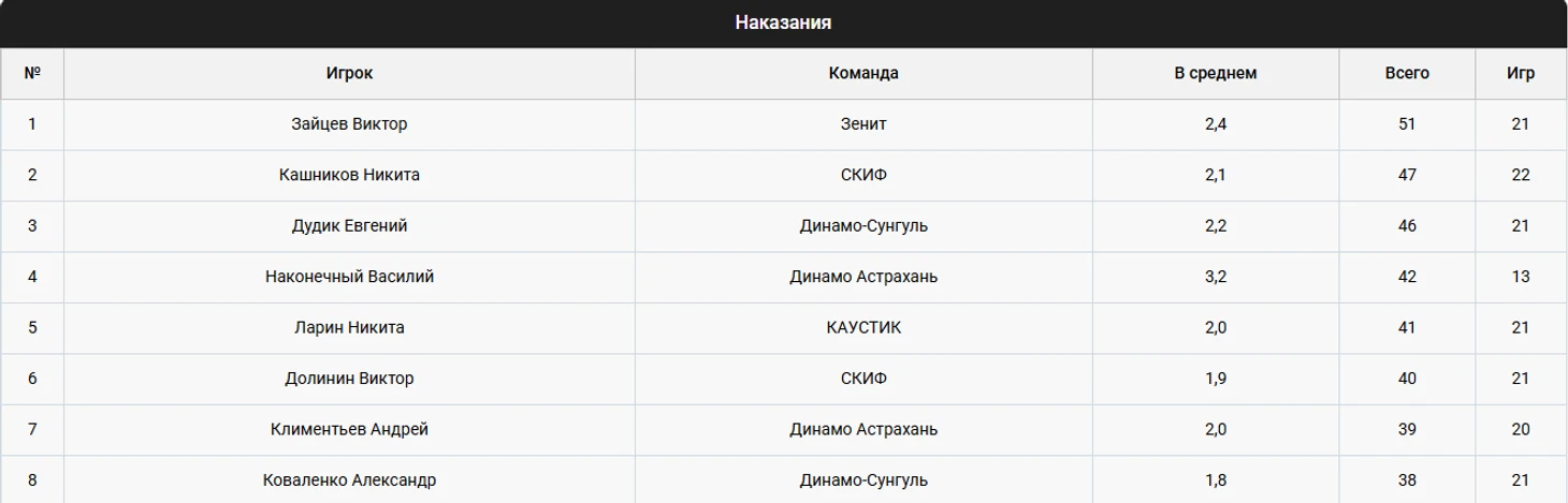 По наказаниям в десятке Евгений Дудик и Александр Коваленко.