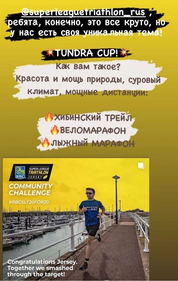Кстати, эта акция нашла отклик в нашей стране: в Мурманске проводят интересный турнир с не менее интересным названием - Tundra cup. Он включает в себя вело- и лыжный марафоны и «хибинский трейл» - можно сказать, триатлон с северным акцентом. Участники «тундры» бурно отреагировали в соцсетях на джерсийскую акцию, так что можно надеяться, что вызов Суперлиги будет принят и в России.